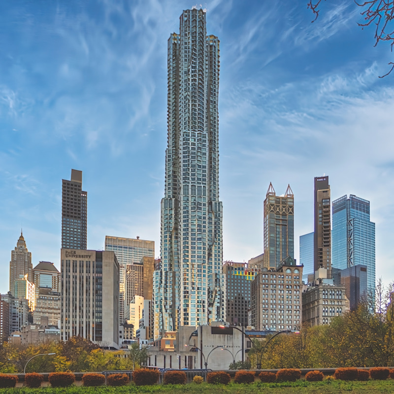Designed by legendary deconstructivism architect Frank Gehry, 8 Spruce stands 76 stories tall in New York City's Financial District with incomparable views of New York's landmarks, parks, and waterways. 8 Spruce was the previous winner of the renowned Emporis Skyscraper Award, given for architectural excellence in design and functionality. Only two other New York skyscrapers have won this prestigious international award.